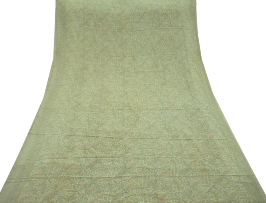 Indian Vintage Sari Green Pure Silk Printed Saree 5yard Sewing Craft Fabric DressMaking Soft Golden Zari