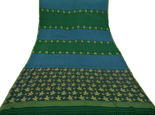 Vintage Green Sari 100% Pure Silk Hand Woven/Printed Sarees Fabric 6yard Sewing Soft Dress Designing Crafting