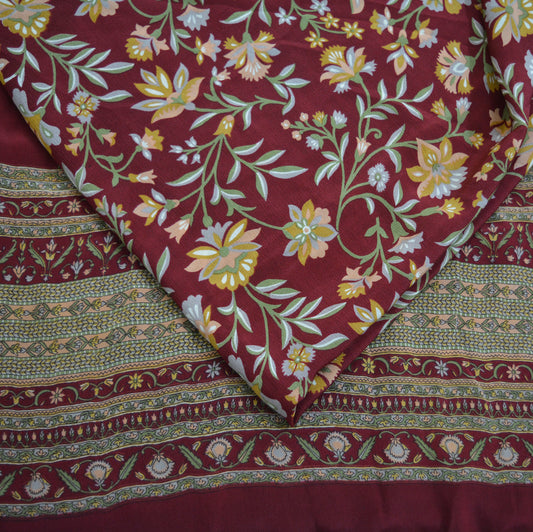 Indian Vintage Sari Dark Red Pure Crepe Silk Printed Saree 5yard Sewing Floral Soft Craft Fabric Ethnic Wrap