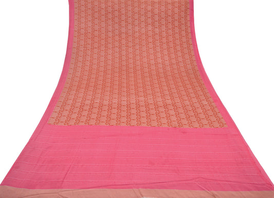 Indian Vintage Sari Beige & Pink Pure Crepe Silk Printed Saree 5yard Sewing Abstract Soft Craft Fabric Wrap