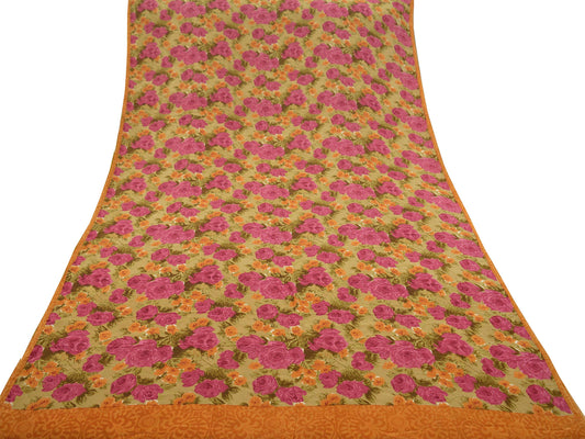 Indian Vintage Sari Orange & Pink Moss Crepe Printed Sarees 5yd Craft Fabric Sewing Floral Soft Dressmaking Quilting Crafting Upcycle Used