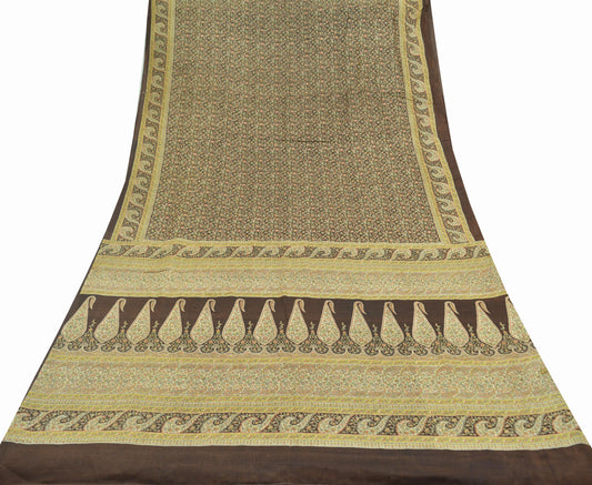 Indian Vintage Sari Brown 100% Pure Georgette Silk Printed Sarees Sewing 5yard Soft Craft Floral Design Wrap Boho