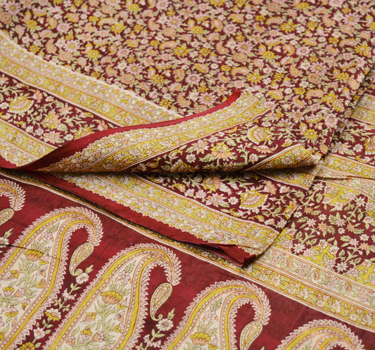 Indian Vintage Sari Maroon 100% Pure Silk Printed Saree Fabric 6yard Sewing Craft DressMaking Soft Paisley