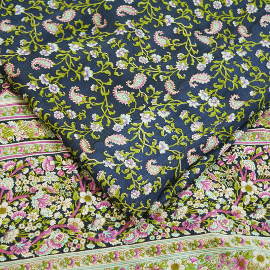 Indian Vintage Sari Green & Blue 100% Pure Silk Printed Saree Fabric 5yd Sewing Craft Fabric DressMaking Soft Wrap