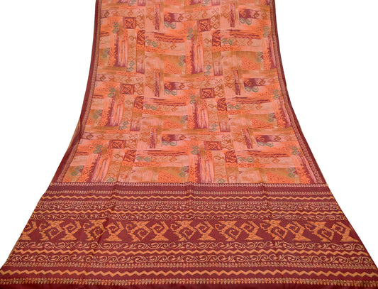 Indian Vintage Sari Orange & Maroon Pure Silk Printed Sarees 5yd Sewing Craft Fabric Dress Making Soft Decor Quilting Crafting Upcycle used