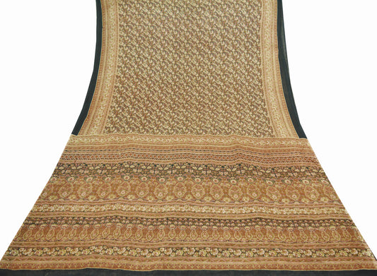 Vintage Sari Black Pure Silk Printed Saree Craft Fabric 5yard Sewing Floral Soft Dress Designing for Crafting