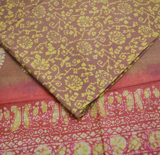 Indian Vintage Sari Pink & Brown Batik Printed Pure Silk Saree Craft Soft Fabric 5Yard Sewing Sarong Wrap Boho