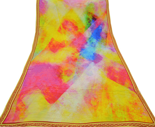 Indian Vintage Sari Yellow Pure Crepe Silk Tie-Dye Printed Sarees Craft Fabric 6yd Sewing Wrap Upcycle Quilting Crafting Dress designing