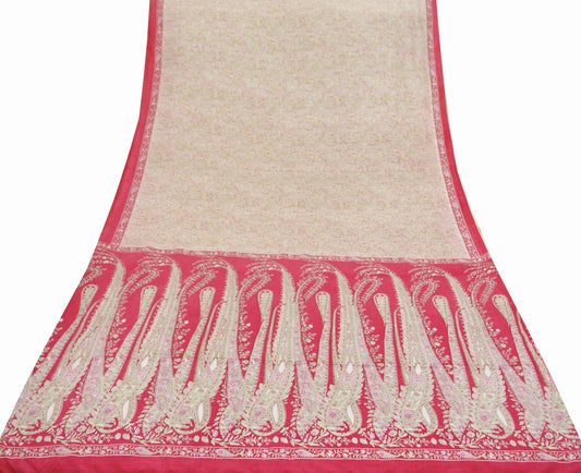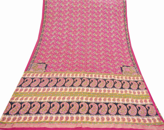 Indian Vintage Sari Pink 100% Pure Silk Sarees Printed 5yd Sewing Craft Fabric DressMaking Soft Paisley Zari Quilting Crafting Upcycle Used