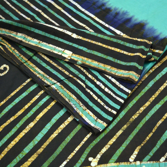 Indian Vintage Sari Black & Green Batik 100% Pure Cotton Printed Sarees 5Yd Craft Fabric Soft Sewing Sarong Wrap Boho Quilting Dress making