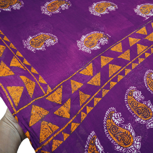 Indian Vintage Sari Purple Printed Sarees Pure Cotton Craft Fabric 5Yd Soft Sewing Sarong Wrap Boho Upcycle Quilting Crafting Used
