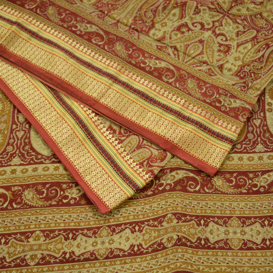 Indian Vintage Sari Maroon & Beige Printed Saree 100% Pure Cotton 5Yd Craft Fabric Soft Sewing Sarong Wrap Floral Quilting Dress designing