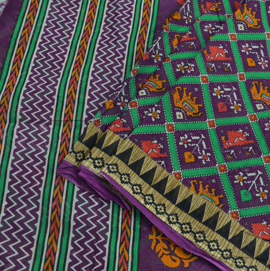 Indian Vintage Purple Saree Ikat Printed Pure Cotton Sari Craft Fabric 5Yard Sewing Sarong Wrap Boho Floral Dress Making Quilting Upcycle