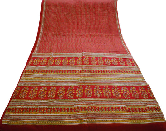 Indian Vintage Saffron & Red Saree Printed Lady Pure Cotton Sari Craft Fabric Soft 5Yd Sewing Sarong Wrap Boho Floral Quilting Crafting