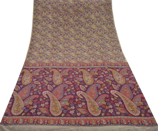 Indian Vintage Sari Cream Pure Crepe Silk Printed Sarees 5yd Sewing Paisley Soft Craft Fabric Wrap Dress making Quilting Crafting Upcycle