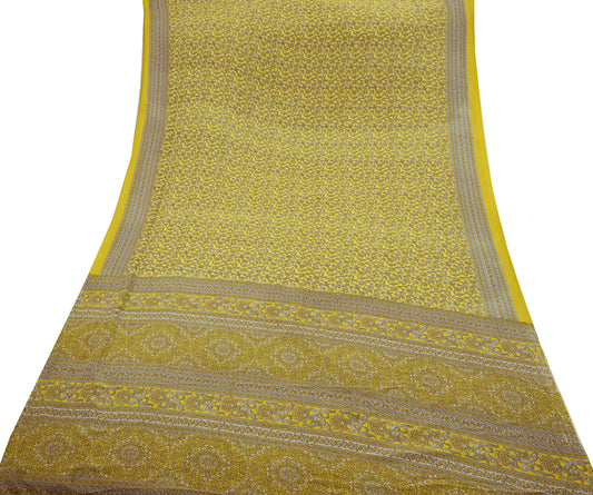 Indian Vintage Sari Gray & Yellow Pure Georgette Silk Printed Sarees 5Yd Craft Fabric Sewing Quilting Dress making Crafting Quilting Upcycle