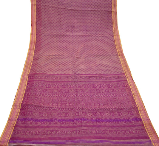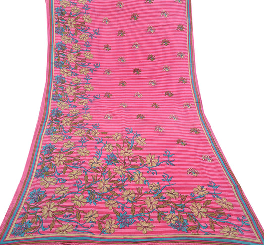 Indian Vintage Sari Pink Printed Pure Cotton Saree Craft Fabric 5Yd Soft Sewing Sarong Wrap Boho Floral Dress making Crafting