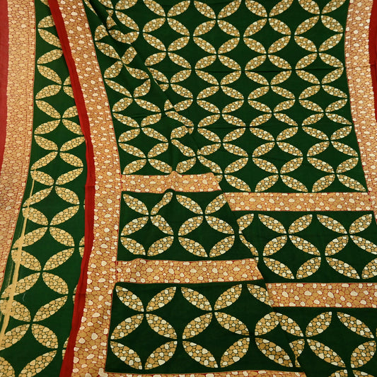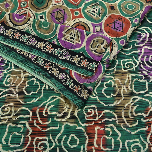Indian Vintage Sari Green & Ivory Batik Printed Saree 100% Pure Cotton 5Yd Craft Fabric Soft Sewing Sarong Wrap Boho Quilting Dress Making