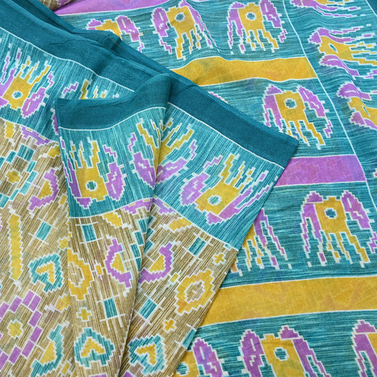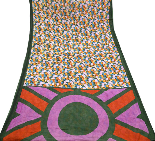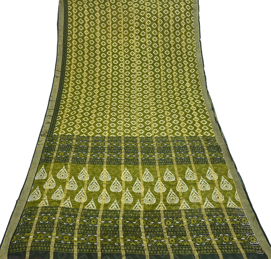 Indian Vintage Green Saree Pure Cotton Printed Woven Sari Craft Soft Fabric 5Yd Sewing Sarong Wrap Boho Abstract Design