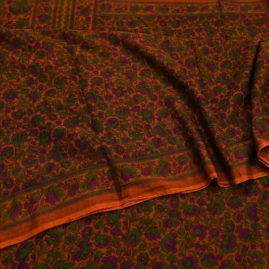 Indian Vintage Sari Saffron Printed Cotton Saree Craft Fabric 5Yd Sewing Sarong Wrap Boho Floral Dress making Crafting