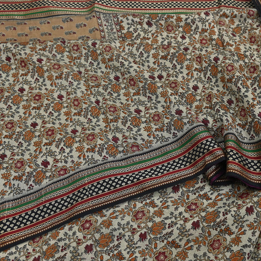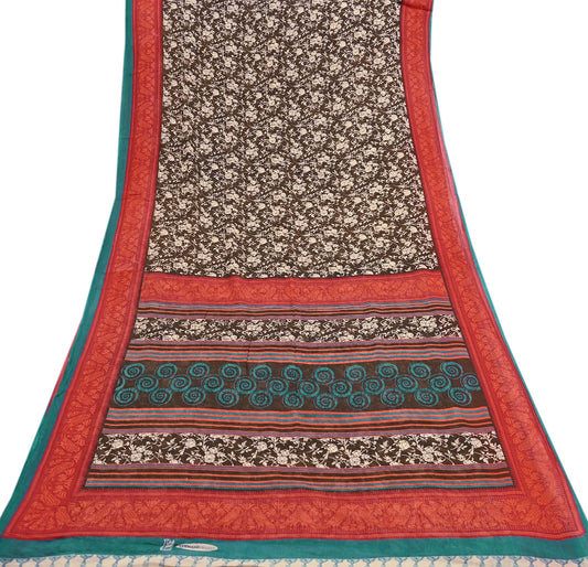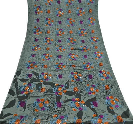 Indian Vintage Gray & Brown Saree Blend Cotton Printed Indian Sari Craft Soft Fabric 5Yard Sewing Sarong Wrap Floral Floral
