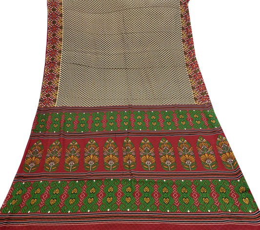 Indian Vintage Beige & red Saree Printed 100% Pure Cotton Sari Craft Fabric 5Yd Soft Sewing Sarong Wrap Dress Making Quilting
