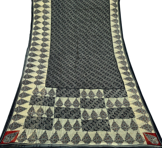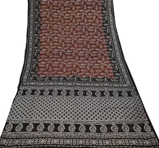 Indian Vintage Brown & Black Saree Printed Pure Cotton Sari Craft Fabric 5Yd Sewing Sarong Wrap Boho Floral Quilting Crafting Dress Making