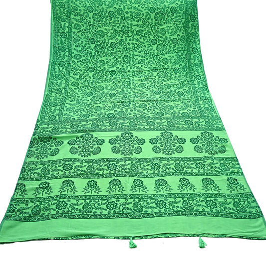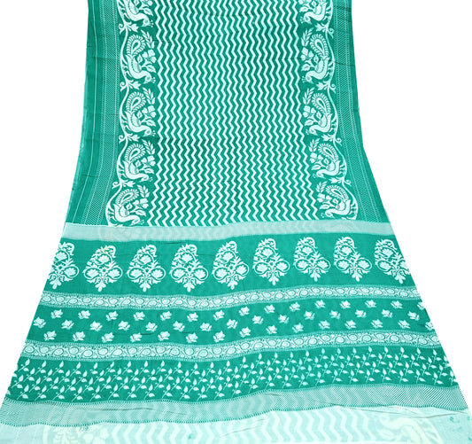 Indian Vintage Sari Green Pure Cotton Printed Sarees Craft Fabric Soft 5Yd Sarong Wrap Boho Fabric Kimono Quilting Crafting Upcycle