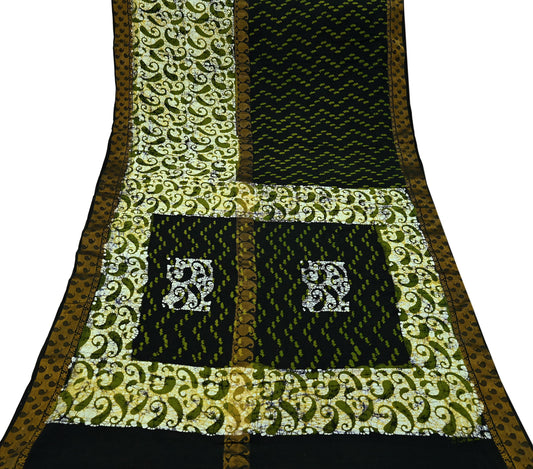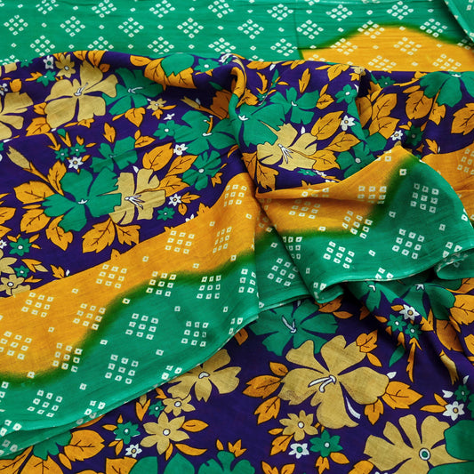 Indian Vintage Sari Green & Purple Pure Cotton Bandhani Printed Sarees 5yd Sewing Craft Fabric Dress Making Soft Sarong Quilting Crafting