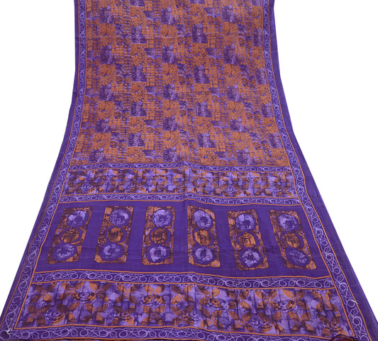 Vintage purple & Mustard saree pure cotton printed sari 5yard fabric wesing sarong crafting