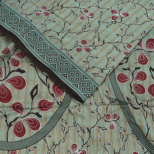 Indian Vintage Sari Green Printed Pure Cotton Saree Soft Floral 5Yd Sarong Wrap Boho Fabric Kimono Soft