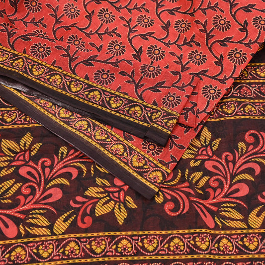 Indian Vintage Sari Red & Black Printed 100% Pure Cotton Sarees Craft Fabric 5Yard Sewing Sarong Wrap Boho Floral Dress making Quilting Soft