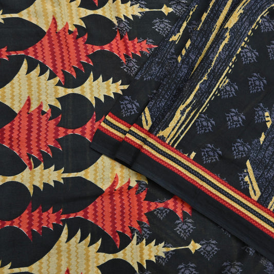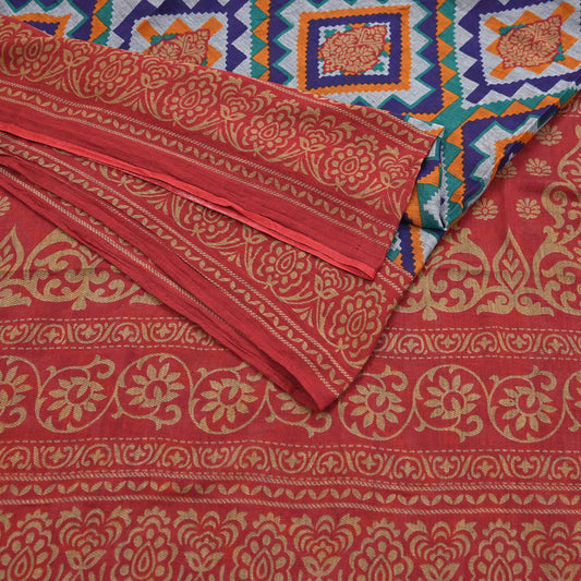 Indian Vintage Sari Red & Multi Printed 100% Pure Cotton Sarees Craft Fabric 5Yd Sewing Sarong Wrap Boho Floral Dress Making Crafting Soft
