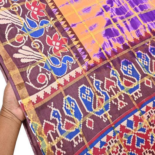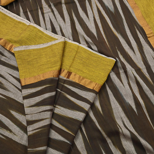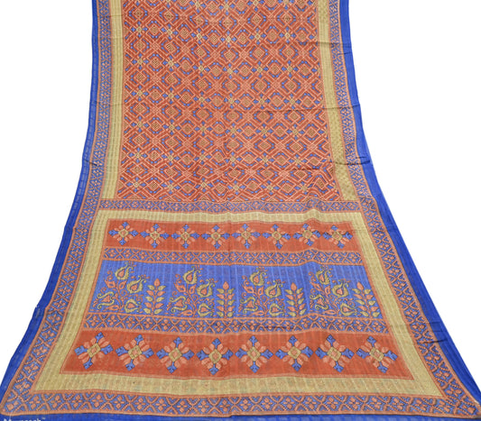 Indian Vintage Brown Saree Ikat Printed Pure Cotton Sari Craft Fabric 5Yard Sewing Sarong Wrap Boho Dress Making Quilting Upcycle