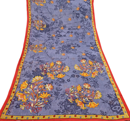 Indian Vintage Gray Saree Printed Pure Cotton Indian Sari Craft Fabric 5Yd Sewing Soft Sarong Wrap Boho Floral Quilting Crafting