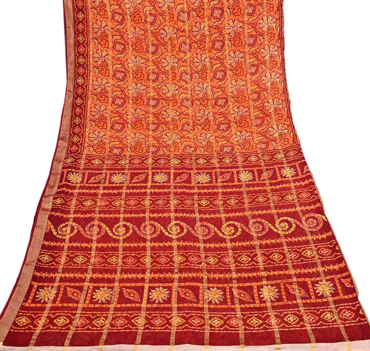 Indian Vintage Sari Red & Orange Batik Printed Pure Cotton Saree Craft Fabric 5Yd Sewing Soft Sarong Wrap Boho Dress Making Quilting