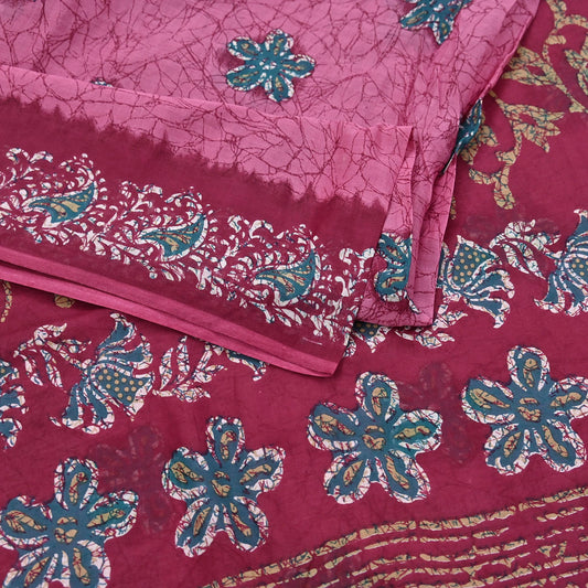 Indian Vintage Sari Pink & Red Batik Printed Saree 100% Pure Cotton 5Yd Craft Fabric Soft Sewing Sarong Wrap Boho Quilting Dress Making