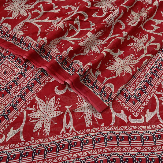 Indian Vintage Red & Beige Saree Printed 100% Pure Cotton Sari Craft Fabric 5Yd Soft Sewing Sarong Wrap Dress Making Quilting Crafting