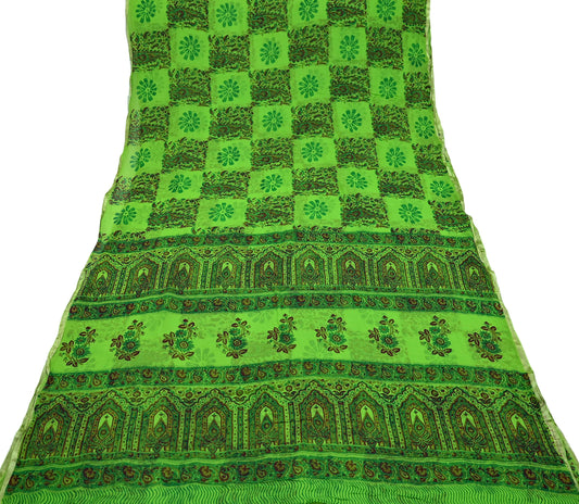 Indian Women Vintage Green Sarees Blend Chiffon Printed Sari Sewing 5yd Soft Craft Fabric Floral Wrap Boho Zari Quilting Blouse Fabric