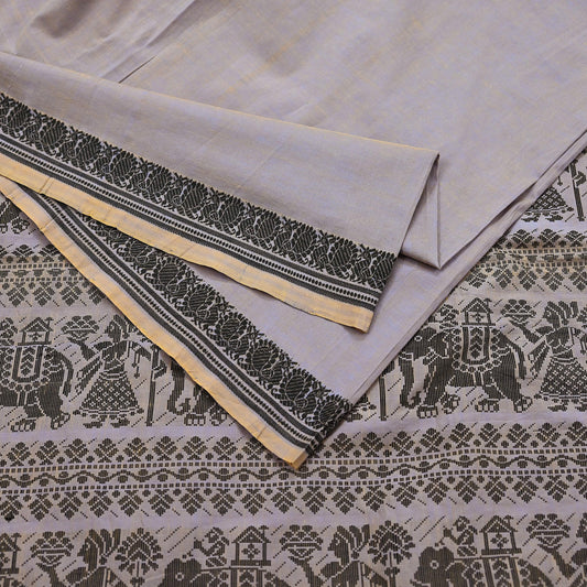 Indian Vintage Ivory Saree Pure Khadi Silk Handloom Warli Printed Sari Craft Fabric 5yd Ethnic Wear Sari Humans Dress making Crafting