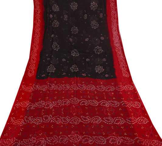Women Vintage Red & black Saree Pure Georgette Silk Bandhani Printed Sari Craft Fabric Sewing 5Yard Soft Light Sari Dress Making Quilting