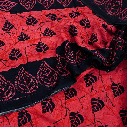Indian Vintage Red Saree Block Printed Pure Cotton Sari Craft Fabric Soft 5Yd Sewing Sarong Wrap Boho Quilting Crafting Upcycle Dress making