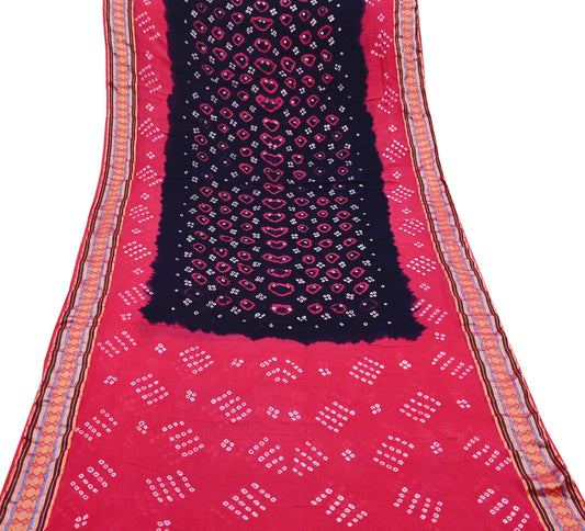 Indian Vintage Sari Pink & Black Pure Cotton Bandhani Printed Sarees Fabric 5yd Sewing Craft Fabric DressMaking Soft