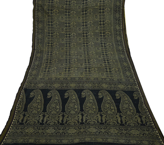 Indian Vintage Black & Gray Saree Printed Pure Cotton Indian Sari Craft Fabric 5Yd Sewing Soft Sarong Wrap Boho Floral Quilting Crafting