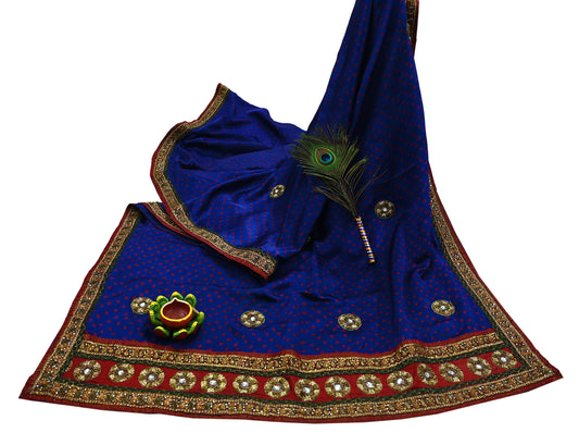 Indian Vintage Blue Saree Hand Embroidered Bandhani Printed Sari 100% Pure Satin Silk Indian Sari Fabric 5yard Soft Craft Fabric Beaded
