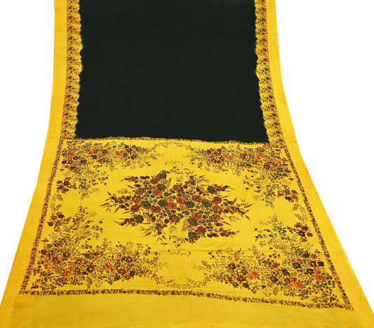 Indian Vintage Saree Yellow Pure Crepe Silk Printed Sari Fabric 5yd Sewing Floral Soft Craft Fabric Wrap Dress making Quilting Upcycle