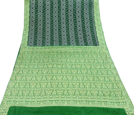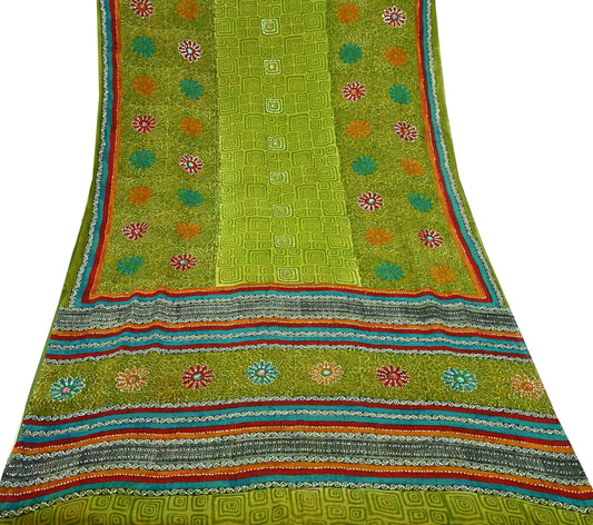 Indian Vintage Green Saree Pure Georgette Silk Hand Embroidered Printed Sari Craft Fabric Sewing 6Yard Soft Light Dress Making Floral
