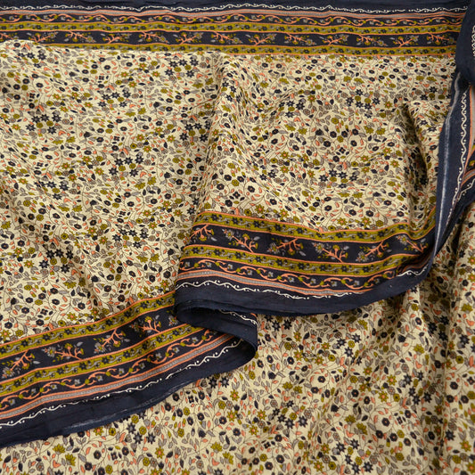 Indian Vintage Beige Saree Pure Silk Printed Sari Craft Fabric 6yd Sewing Craft Dress Making Soft Paisley Quilting Crafting Upcycle Used