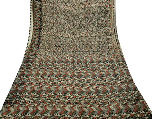 Indian Vintage Ivory & Green Saree Pure Silk Printed Sari 6yd Sewing Craft Fabric Dress Making Soft Crafting Quilting Quilting Upcycle