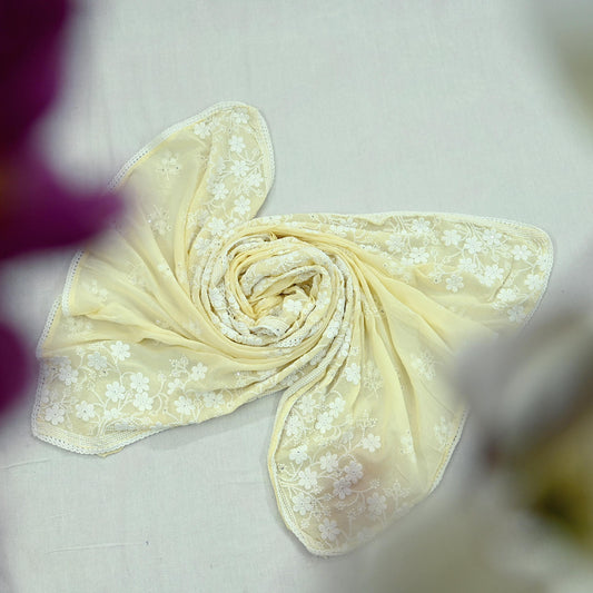 Indian Vintage Yellow Dupatta Long Stole Embroidered Pure Cotton Scarves Veil Sequins Soft